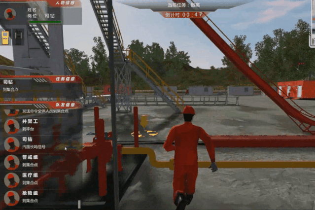 戴上VR(虚拟现实)眼镜,受培训人员可完全置身于虚拟的油田场景中,达到身临其境的培训效果。
